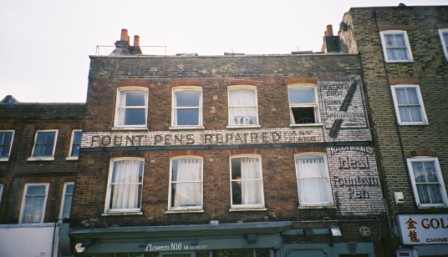 The notion of getting a pen repaired would be alien to most people in today’s world of disposable biros but this sign is evidence that it was once common practice. Although Walker Bros are no more, they have been outlived by Watermans who are still manufacturing pens to this day. This would lead to the conclusion that Watermans got the better deal when they paid for this sign to be painted.