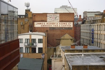 Above is a close-up showing three different elements to the sign. Rose Brand Fine Teas were one of the brands within the James Ashby & Sons portfolio. The ‘Ventilator’ bit underneath seems to relate to something that perhaps came before James Ashby’s occupation of the building. Below is a close-up of the Rose Brand Fine Teas emblem and also shots from the front and back of the building to put the sign into context. The shot from the back also has some elements that seem to relate more to the Ventilators’ use of the building.