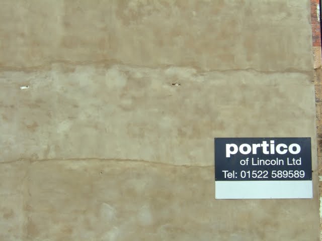 It looks to me as though the Portico people got annoyed by the more attractive old hand painted sign grabbing all the attention and so they took conclusive action. It would be interesting to know whether the covering could be removed to reveal the sign again once more, a pleasant surprise for some urban archaeologists in the future perhaps…