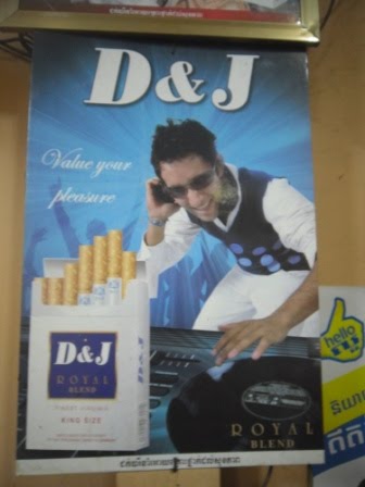 And in Takeo, a reminder that tobacco advertising is far from banned in Cambodia. Value your pleasure with a D&J, or should that be DJ?