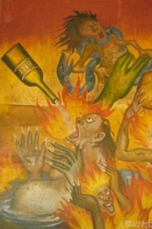 Pagodas across the country have wall paintings depicting a hell-like scene. This one at Sambok Mountain in Kratie province features this interesting component which may not be everyone’s idea of hell…
