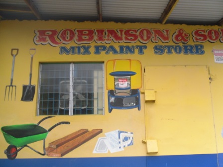 And now as a little ‘compare and contrast’ bonus here are some hand painted signs from Jamaica. The pictures were all taken by Gilly Clifford and it is interesting to note the similarity in terms of the illustration of the goods available for purchase. Does anyone have any other material from West Africa or the Caribbean to see if this is just coincidence or indicative of a wider stylistic symmetry between these locations?