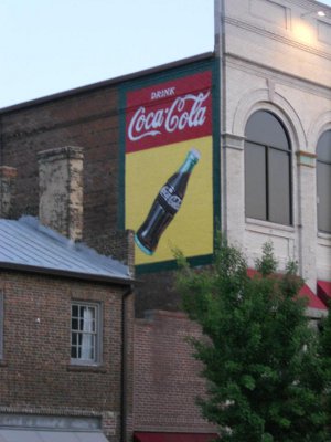 We decided to start with the two Coca-Cola signs because they are big, in excellent locations, and we found out that a neighboring town had done one about six months before. Through using contacts, I got in touch with a representative from Coca-Cola Bottling Company Consolidated. We also contacted three artists around North Carolina who had done this kind of work before. They all came and quoted us for the work and we picked Andy Thompson. He is an actual retired Coca-Cola sign painter. He painted signs like this in the 1950s and 1960s. The cost for both of those signs was $8,000.