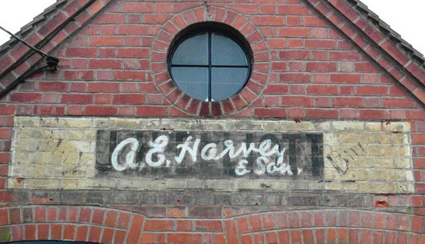 The contrast in styles between the two visible signs is worth noting, the stately blocks of J.H. Elliott up against the hasty script of the more recent A.E. Harvey & Son. The text in the yellowed patches on either side is difficult to decipher, something beginning ‘BU…’ on the right, perhaps Builder or Butcher? The sign that covered it was for a butcher so it could be that the painted sign was an earlier iteration of this. Suggestions in the comments…