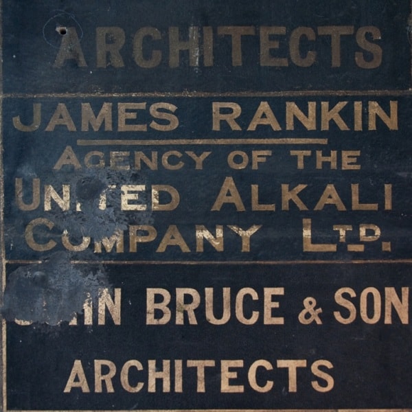 I’ve been fascinated by these old signs for a few years now. They’re glimpses into the past and it’s a terrible shame that so many of them are destroyed. In Scotland you can find them at entrances to Georgian buildings and Victorian tenements, where people used to work and live. They’d be painted just inside the doorway. Edinburgh still has a few – for everything from straw hat makers to Protestant societies. Some of my favourites come from my hometown, Dundee. You can see the titles of strange businesses like the United Alkali Company Ltd, or a sign for a music teacher called Mrs MacPherson who taught in her flat on the third floor. I like to think of Dundonians stopping to listen to her classes as they walked by on the street below.