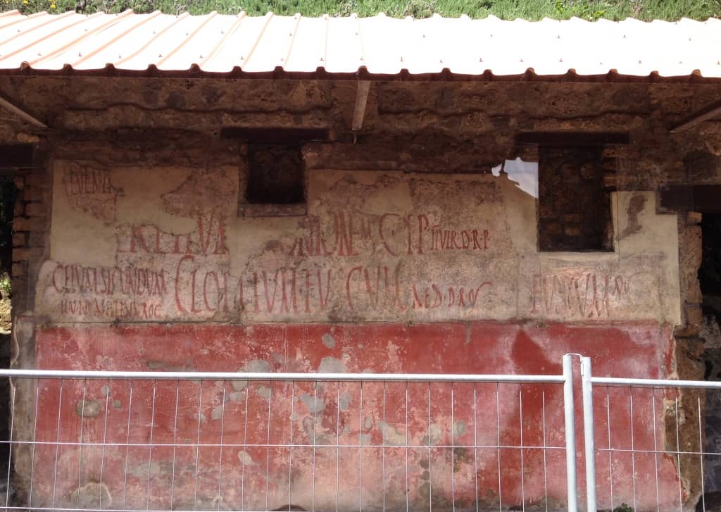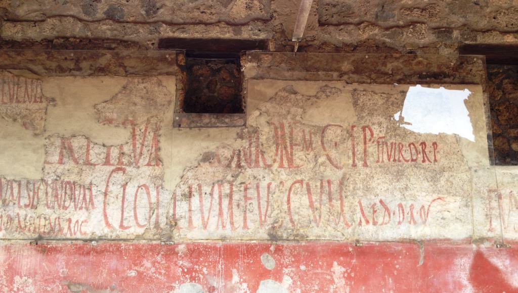 When I give talks on the history of signs painted on walls I often refer to their ancient history, going back at least as far as Roman times. Evidence for this comes from the ruins at Pompeii and Herculaneum as seen before on these photos shared with me by Will Collin five years ago. (Ancient wall painting and ghostsigns are a bit of a recurring theme on this blog.)