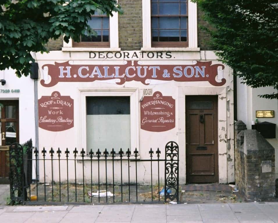 The H. Callcut & Son sign that once adorned this house front has now been whitewashed (see below). It was on Blackstock Road in North London, close to my old primary school, so I was quite sad to see this familiar landmark lost to property development. The photo above, and the details below were taken in 2014. Comments on this blog post suggest that the sign was retouched at some point. RIP.