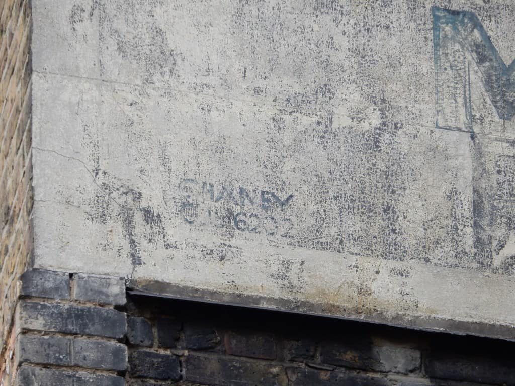 Further down the left side of the sign, towards the bottom, is another phone number, this time with the name ‘Chaney’ painted in small letters above it. This was the signwriter that produced the sign and I decided to see if I could find anything about him/them at Hackney Archives.