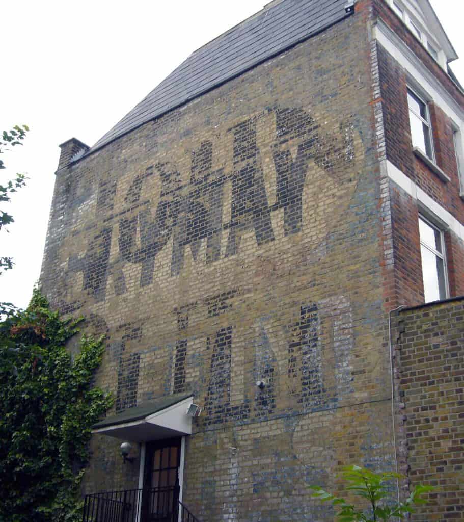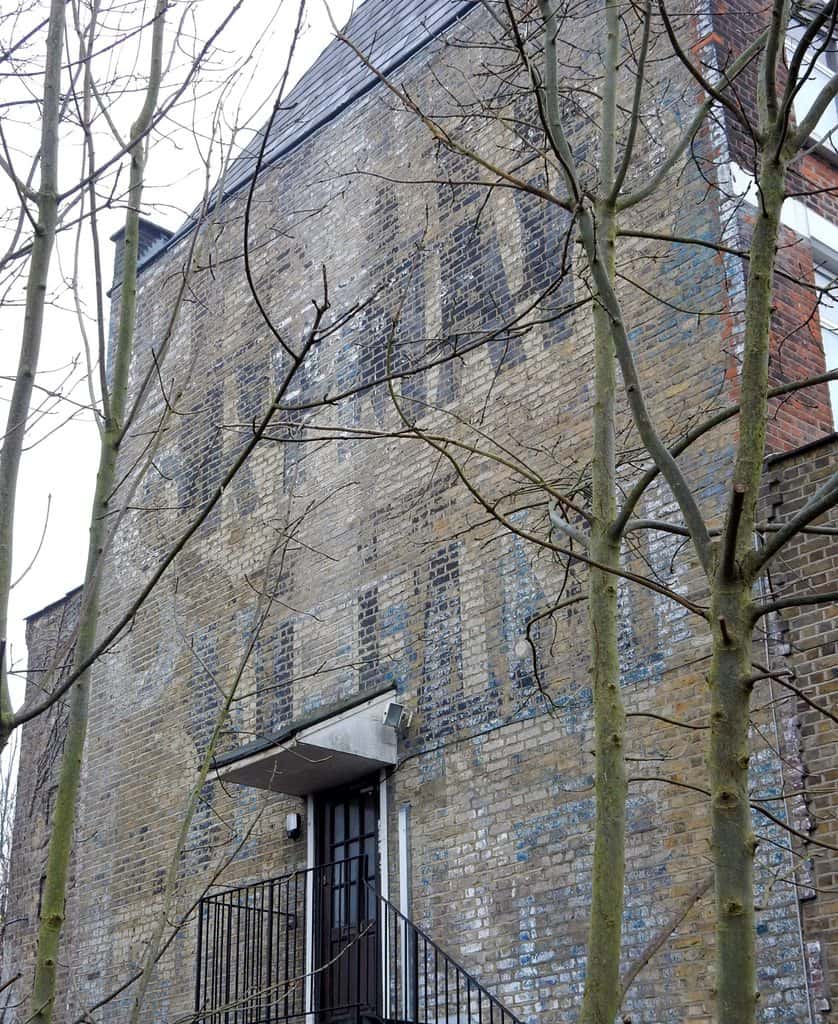 Above is my 2007 photo of the Brymay/John Bull palimpsest on Quernmore Road in Haringey. At the time, in addition to wondering who John Bull was, I said I needed to go back in the winter when the tree would be less obstructive. I did so a couple of weeks ago, as part of my hunt for the old painted signs of Islington. As you can see from the photo below, the sign is still largely obscured, and now a locked door blocks access to the space in front of it. However, continuing up Quernmore Road yielded a cluster of new discoveries…