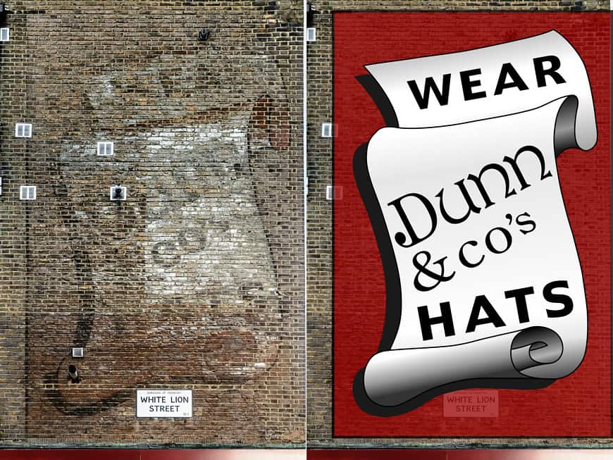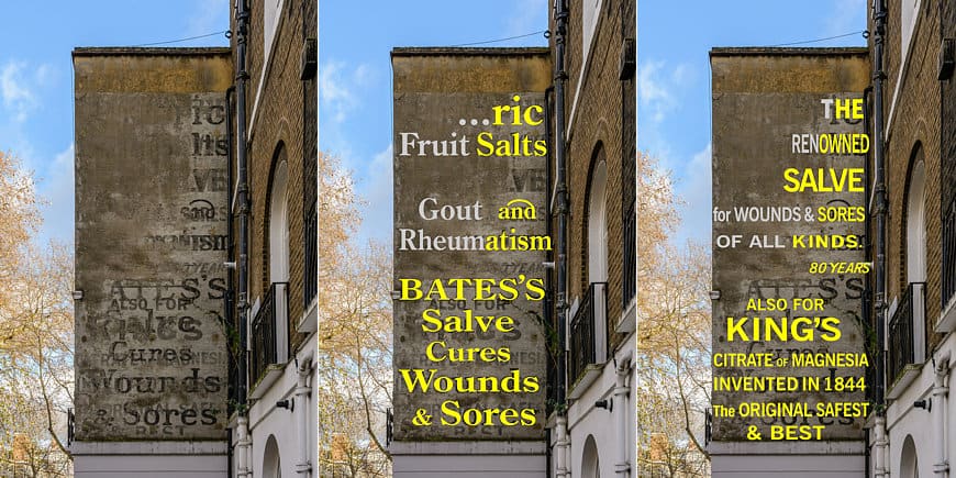 Roy Reed is a prolific collector and researcher of ghost signs, and uses his skills as a designer to decipher them. I’ve featured his work previously, on the almost illegible William Walker & Sons sign in Bermondsey. Roy is also a co-collaborator on the forthcoming Clapham Ghostsigns Walk. He has kindly shared some more of his forensic deciphering work, and I’ve selected ten of my personal favourites to present below, including the Rubenstein sign that features on my Stoke Newington walk. You can also find more of Roy’s photography within his extensive Flickr collection.