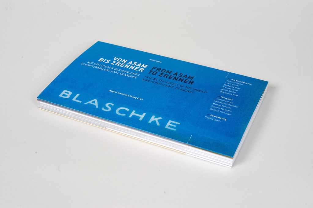 The book is an homage to Blaschke and the work that his signwriting business undertook. Those specimens within the book that are dated are predominantly from the 1950s to the early 1980s, although the business was originally founded by Karl’s father in 1883. It continued trading after Karl’s death in 1970 before finally closing down in 2001. This history of the company, including a handful of archival photographs and documents, is covered in an introductory text in both German and English. This is then followed by a bilingual overview of the sign painting craft itself.