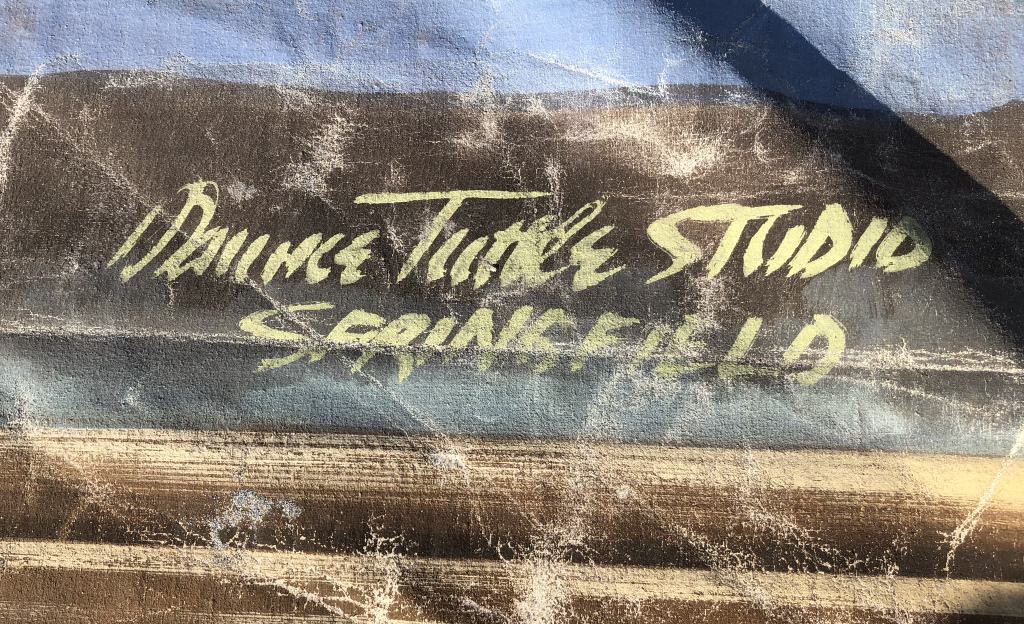 “It is likely that Maurice Tuttle assisted in his father’s (Howard Tuttle) studio in Milwaukee, WI, before working on his own account as a scenic artist. In the early 1900s he traveled widely and worked for a number of companies in various states. Tuttle assisted Jess D. Bonner in Los Angeles in 1907 and worked at Elitch’s Gardens in Denver, CO in 1910. He and his family settled in Springfield, MA in the late 1920s where he produced curtains for the Calvin Theatre and The Academy of Music in Northampton, MA. By the mid-1930s the family had moved to San Diego, CA, where Tuttle continued his career as a scenic artist.” – Curtains Without Borders
